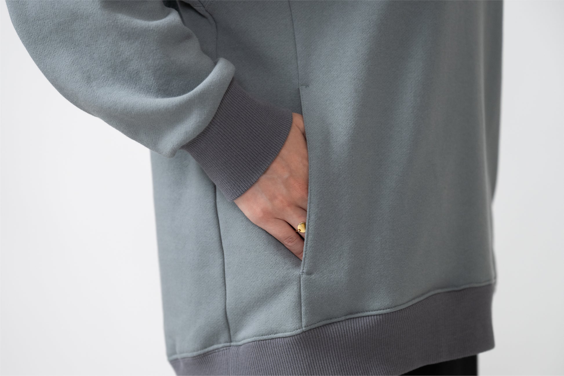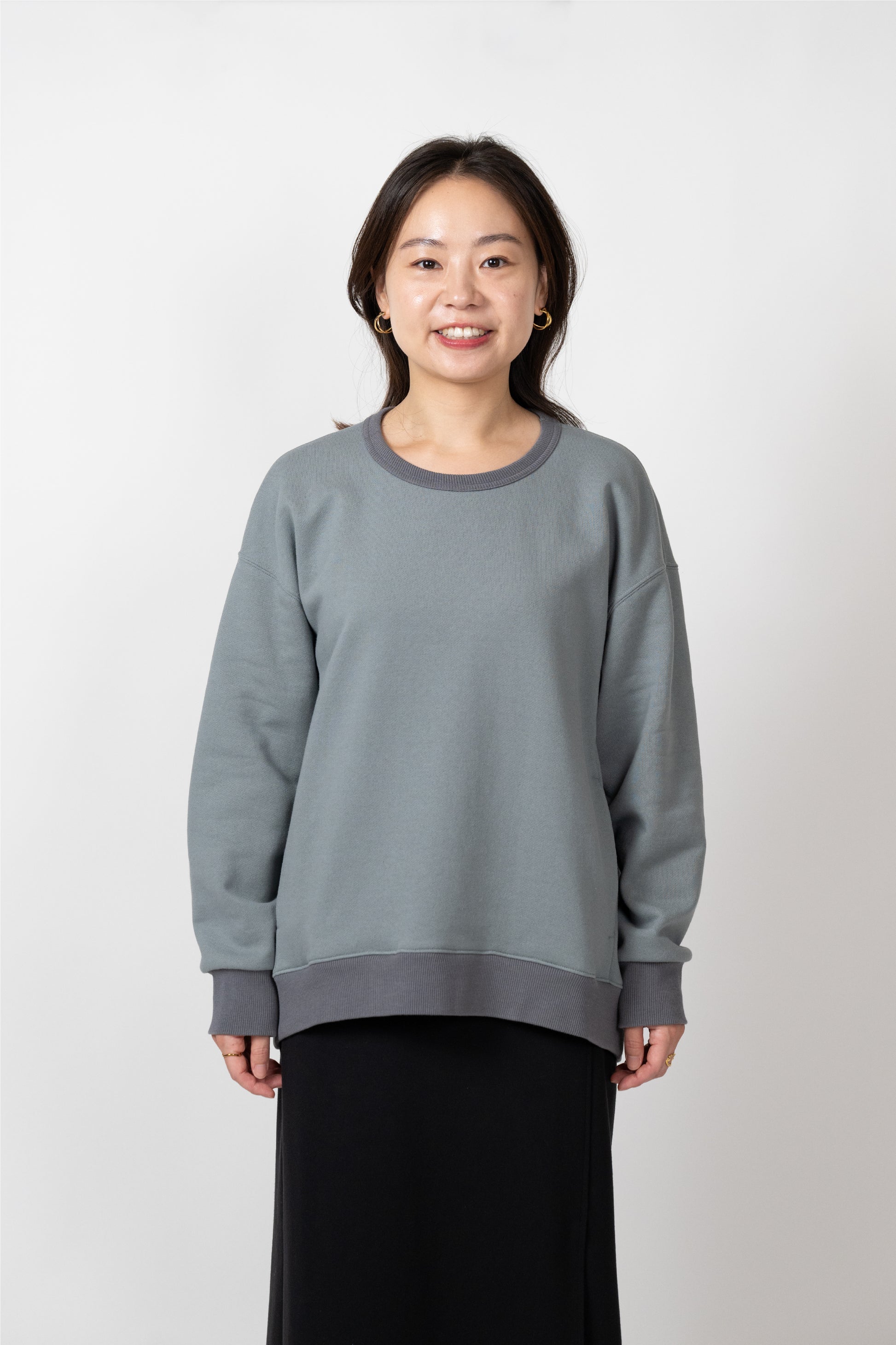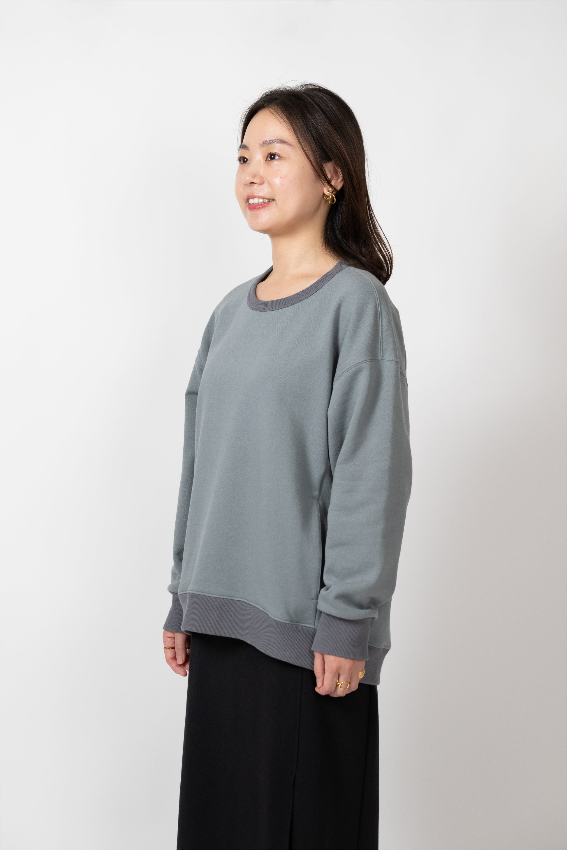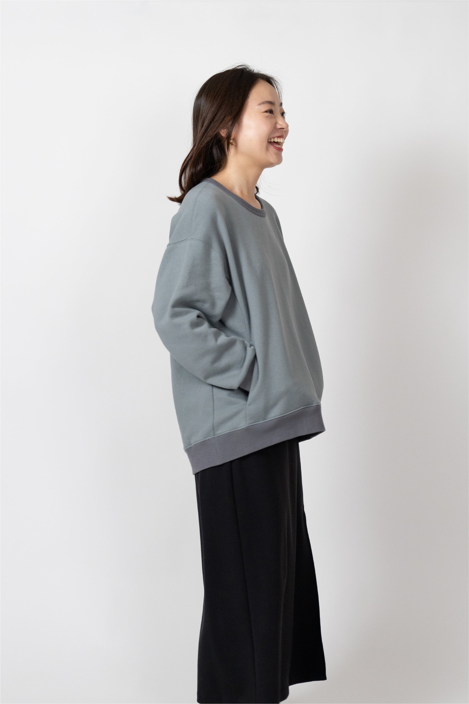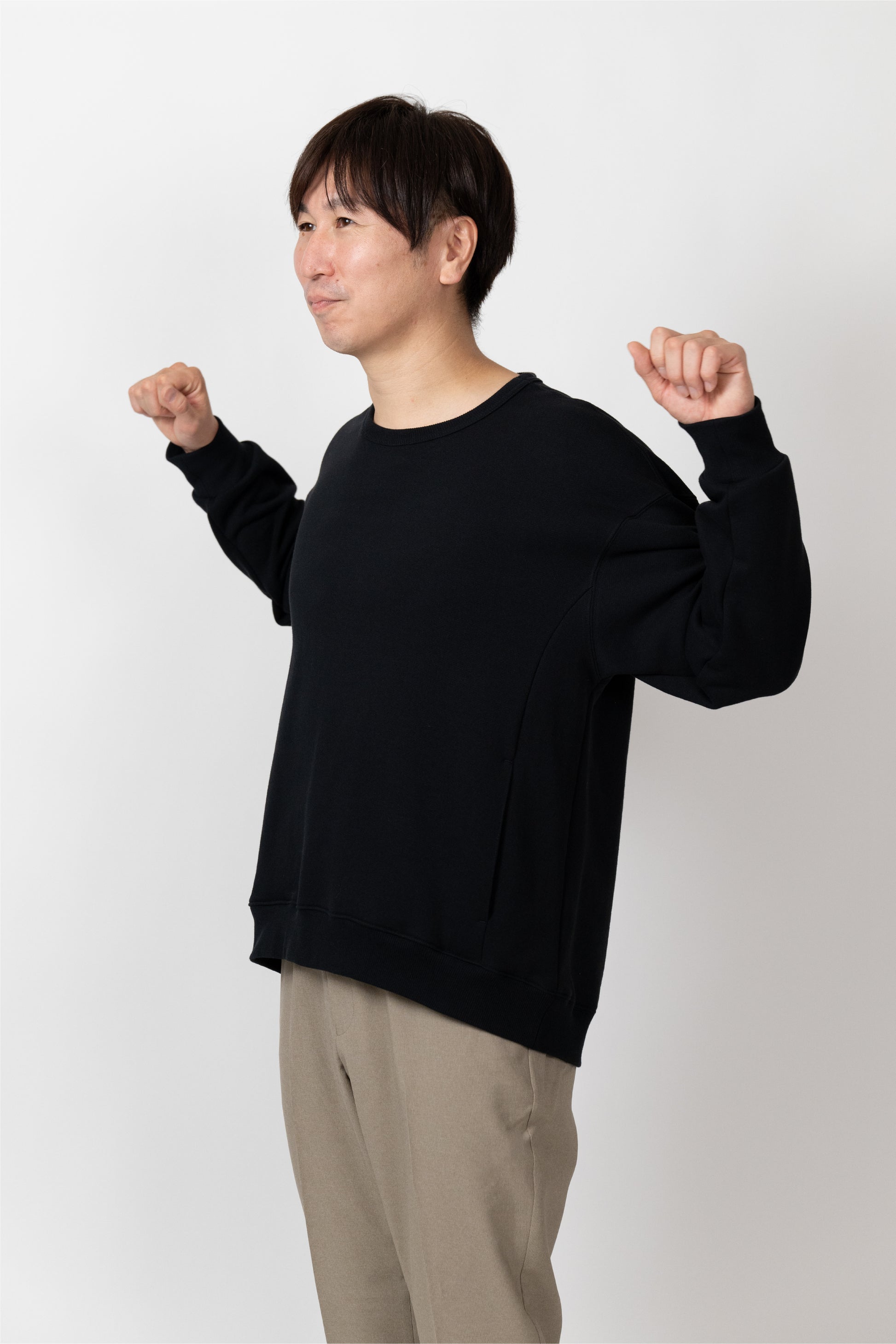 A basic item that can be worn with a loose fit. The silhouette is designed to fit a rounded shoulder posture having a lot of room around the shoulders, making it easy to move your shoulders without stress regardless of your body shape. The neckline is not tight. Casual but also sharp, and the pockets on both sides are convenient.