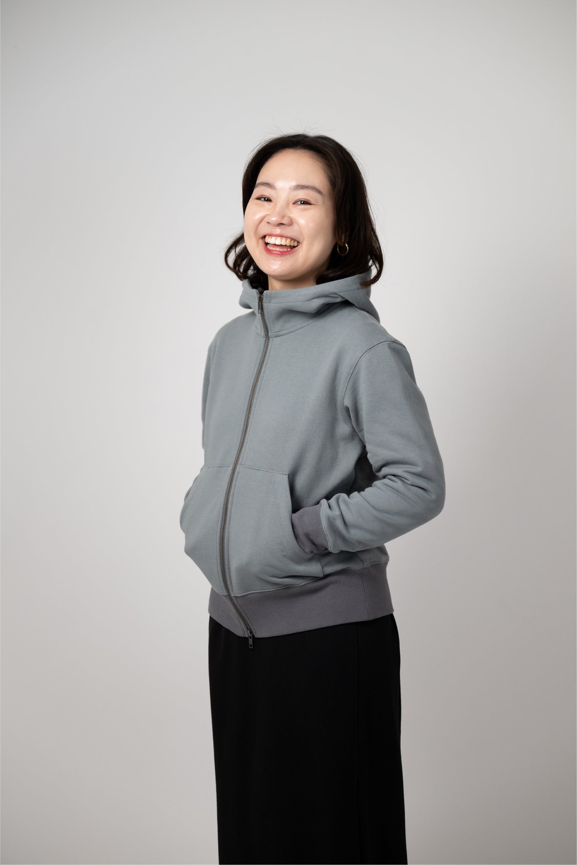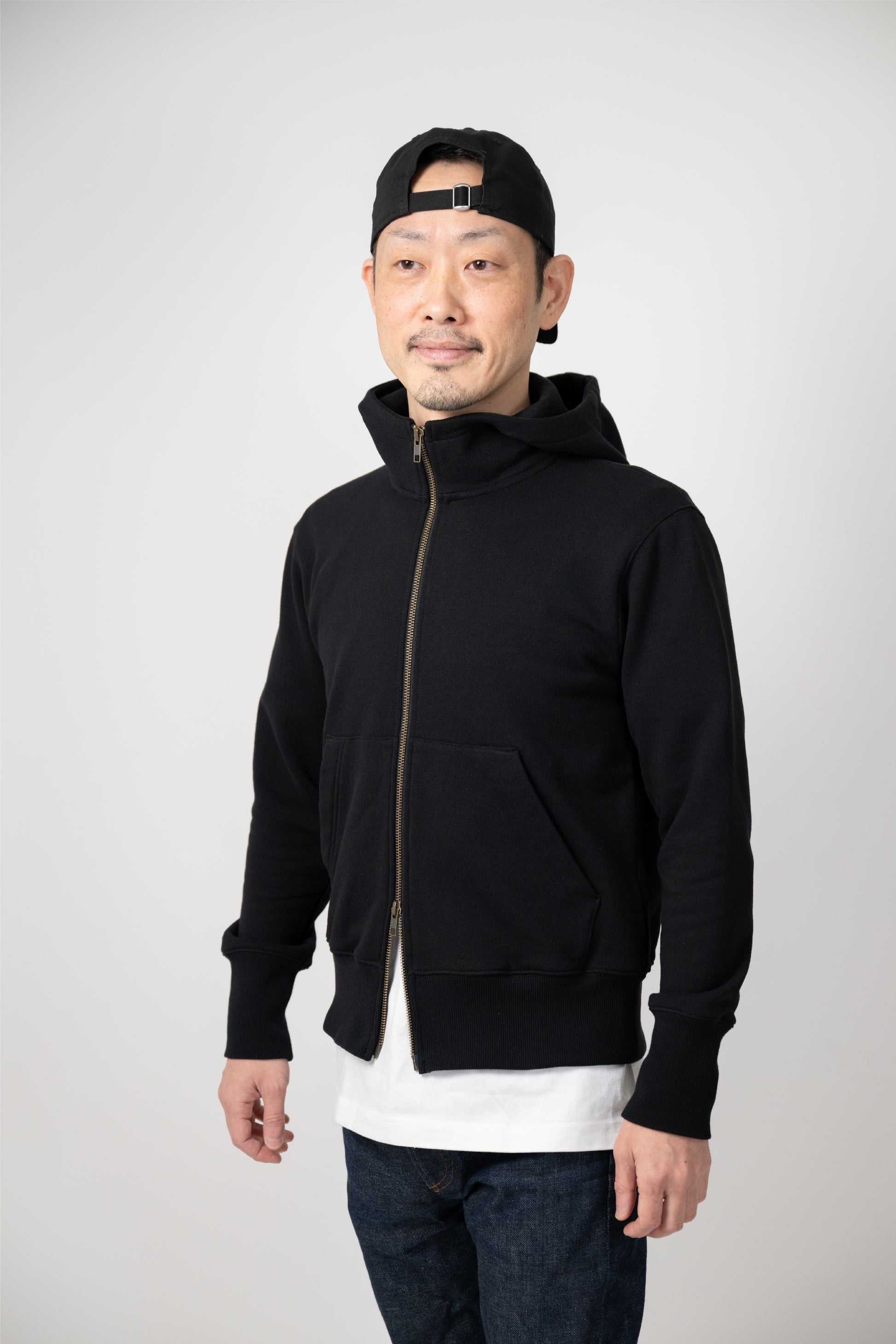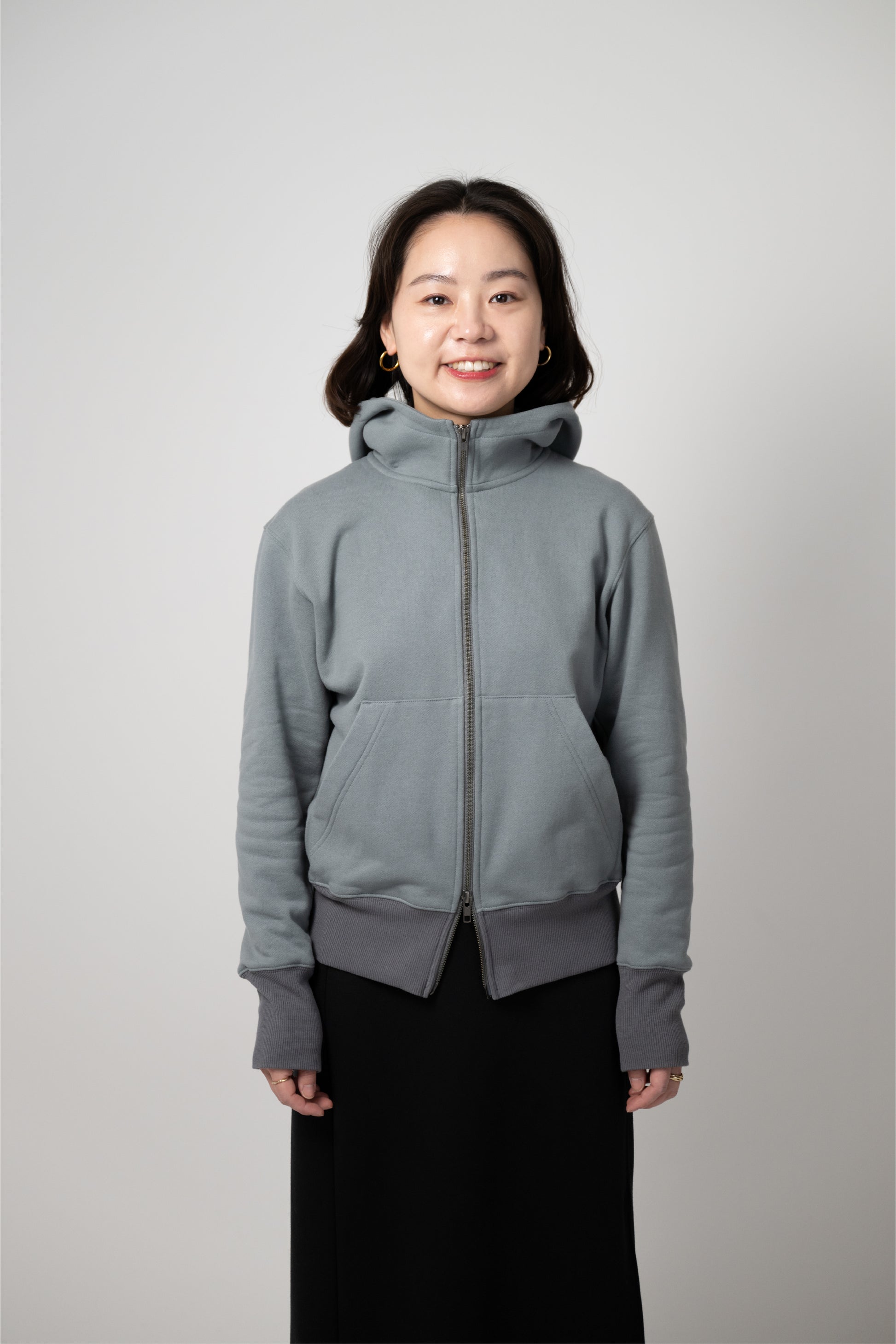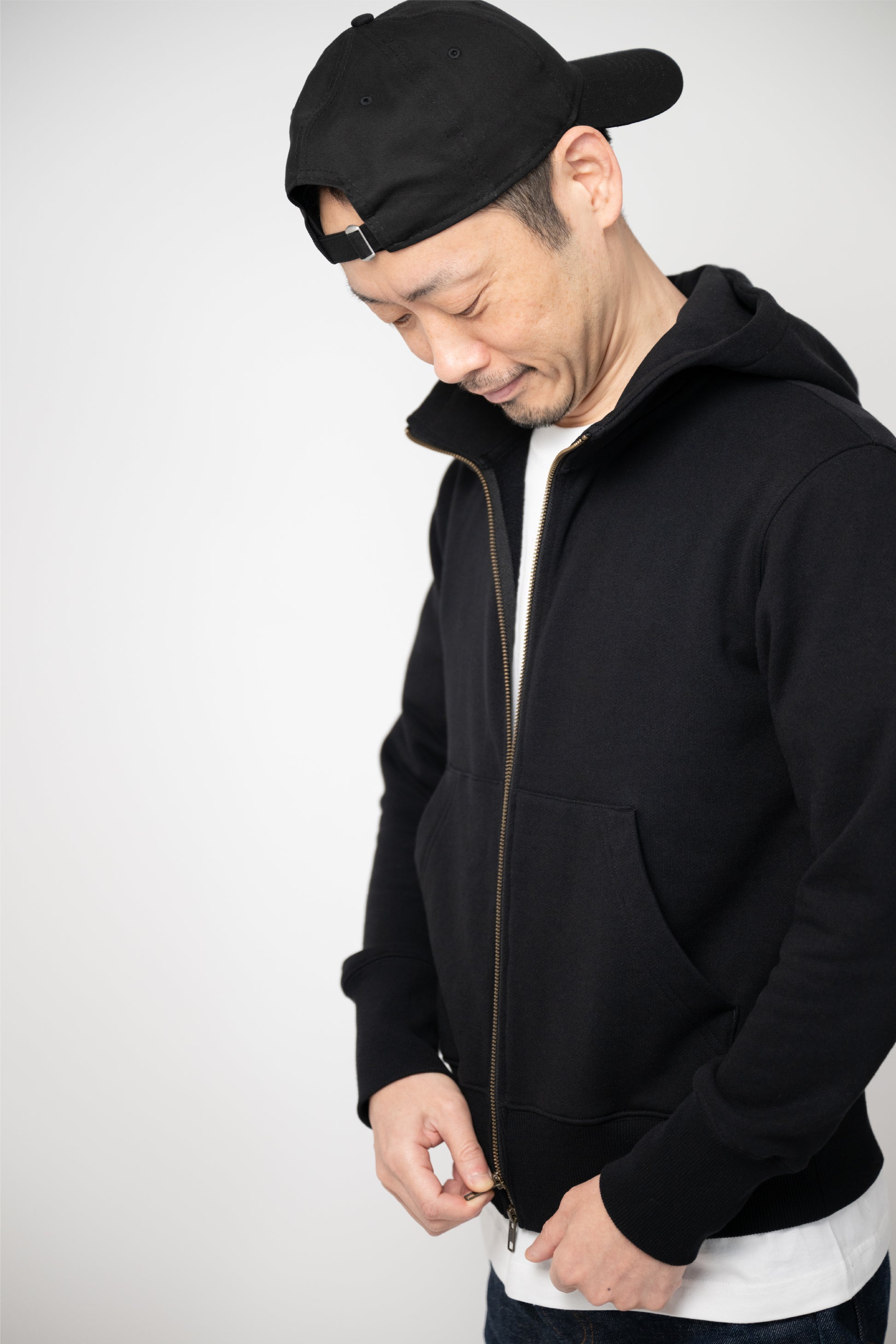 フィット感のあるフルジップパーカー。フードは生地2枚重ねで、立体感を出す形が特徴のこだわりシルエット。インナーとしてもアウターとしても通年使え、ジェンダーや年齢関係なく長く着続けられる一枚。ジッパーはブラックにはアンティークゴールド、グレーにはアンティークシルバーのエレメントを使用。ダブルジップで利便性もあり着こなしも様々。