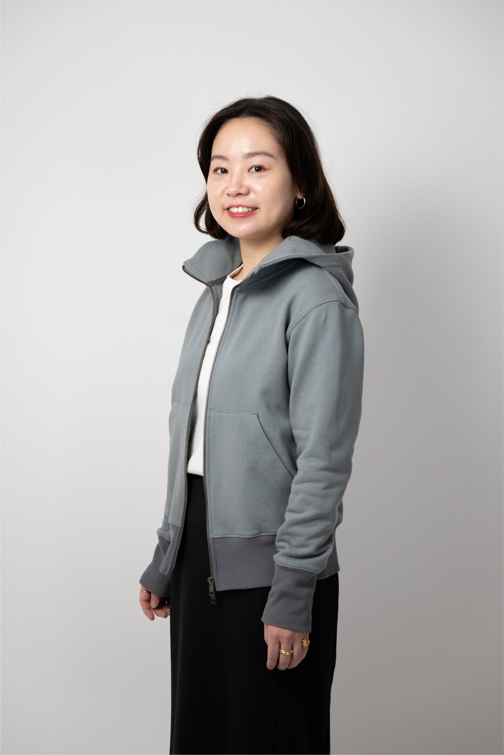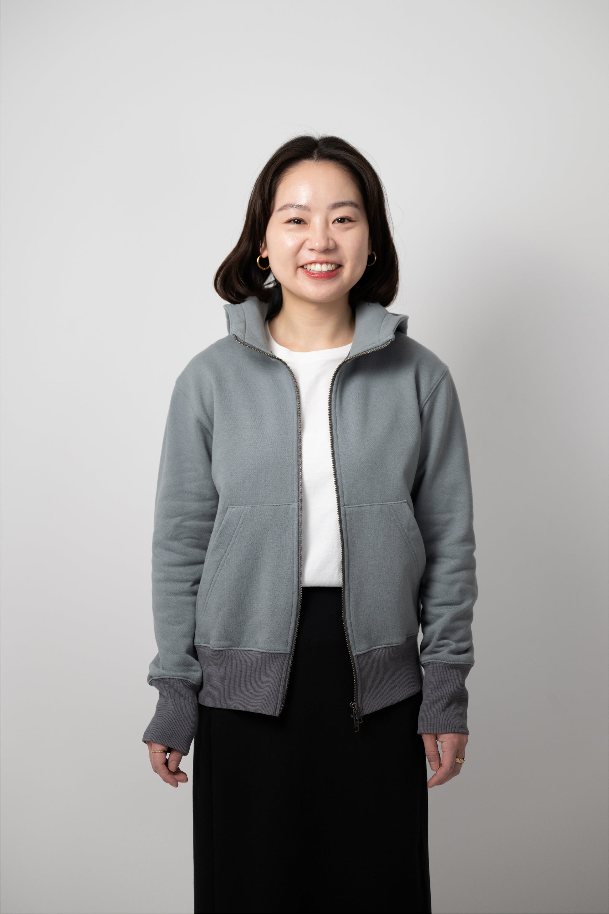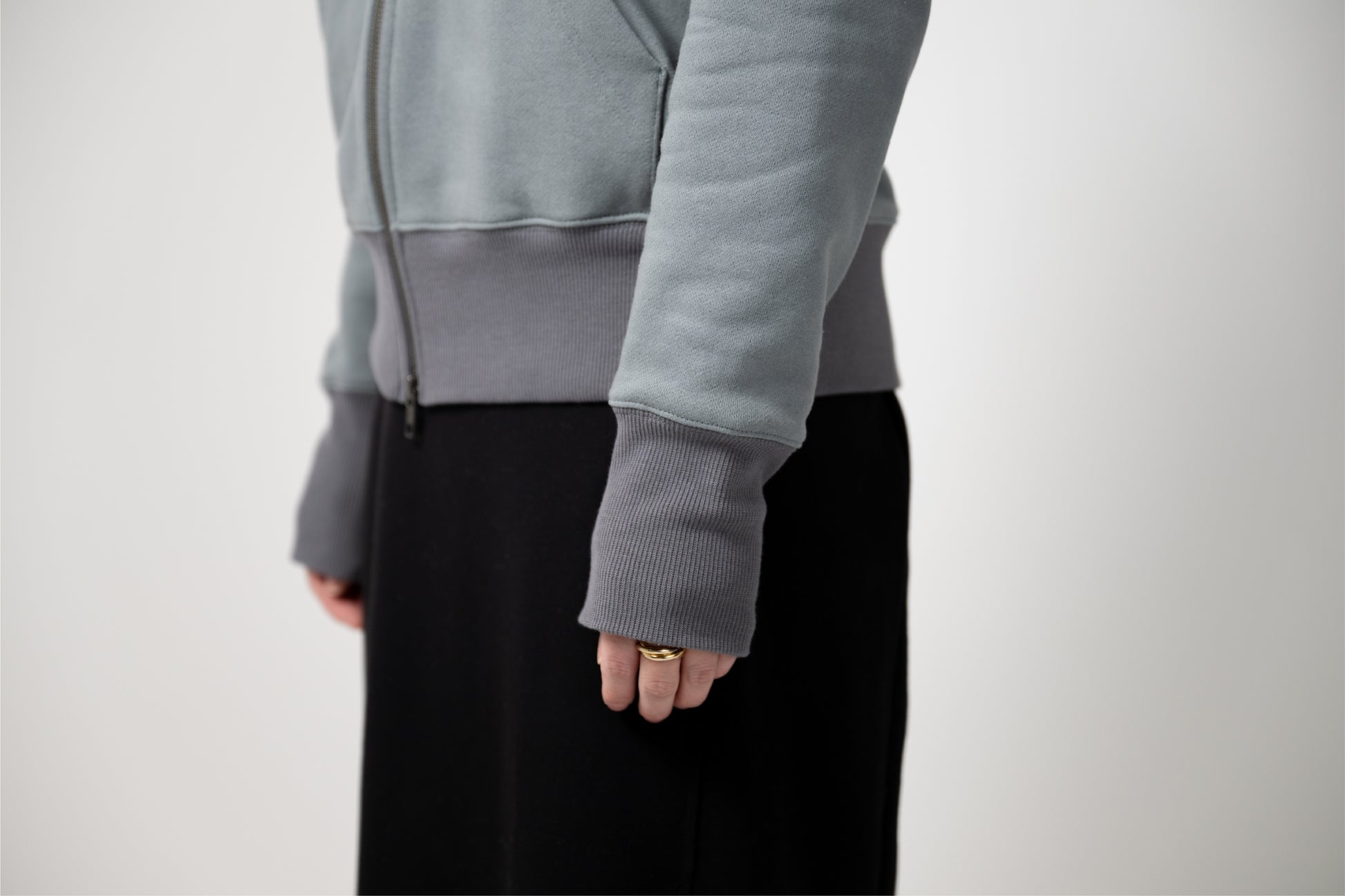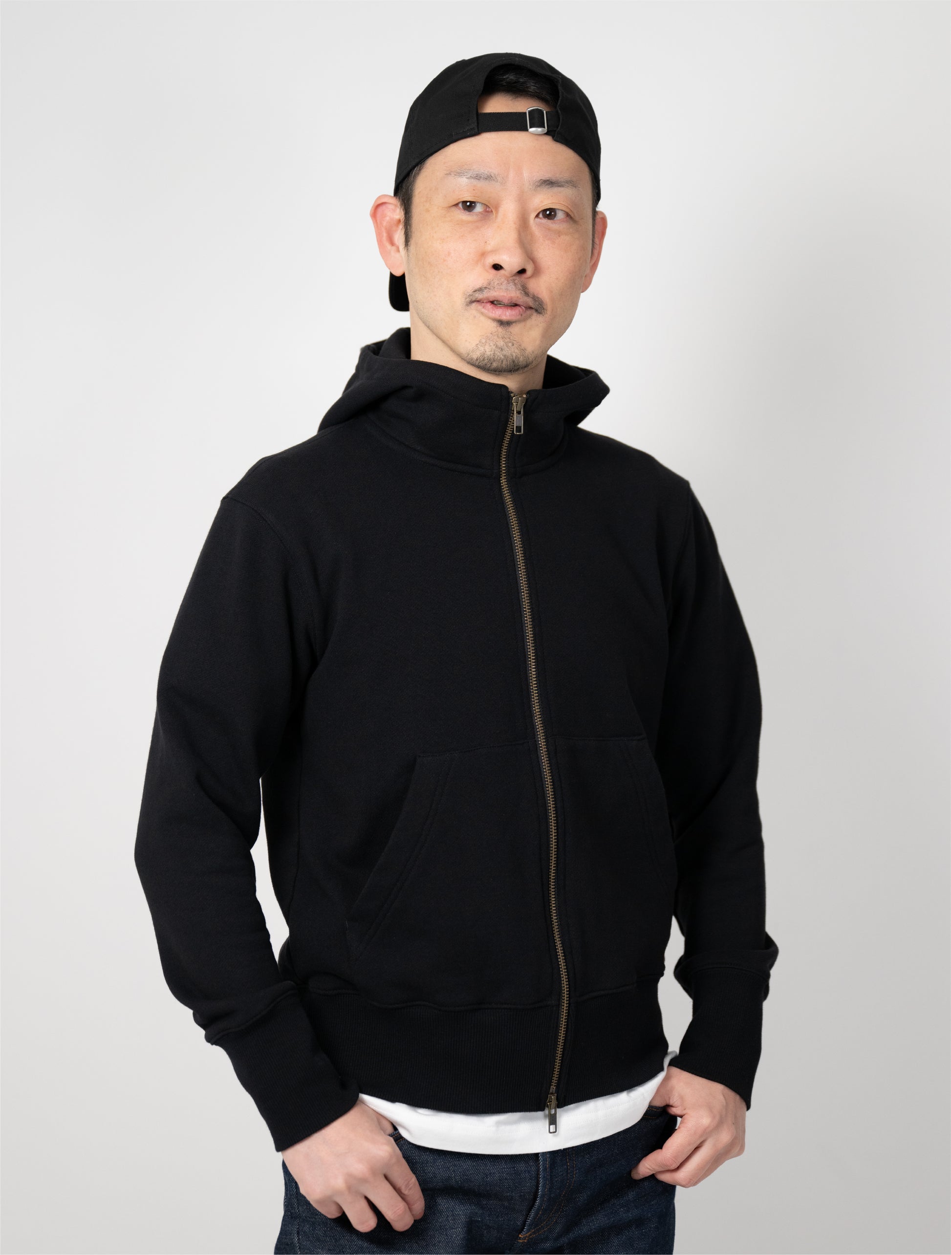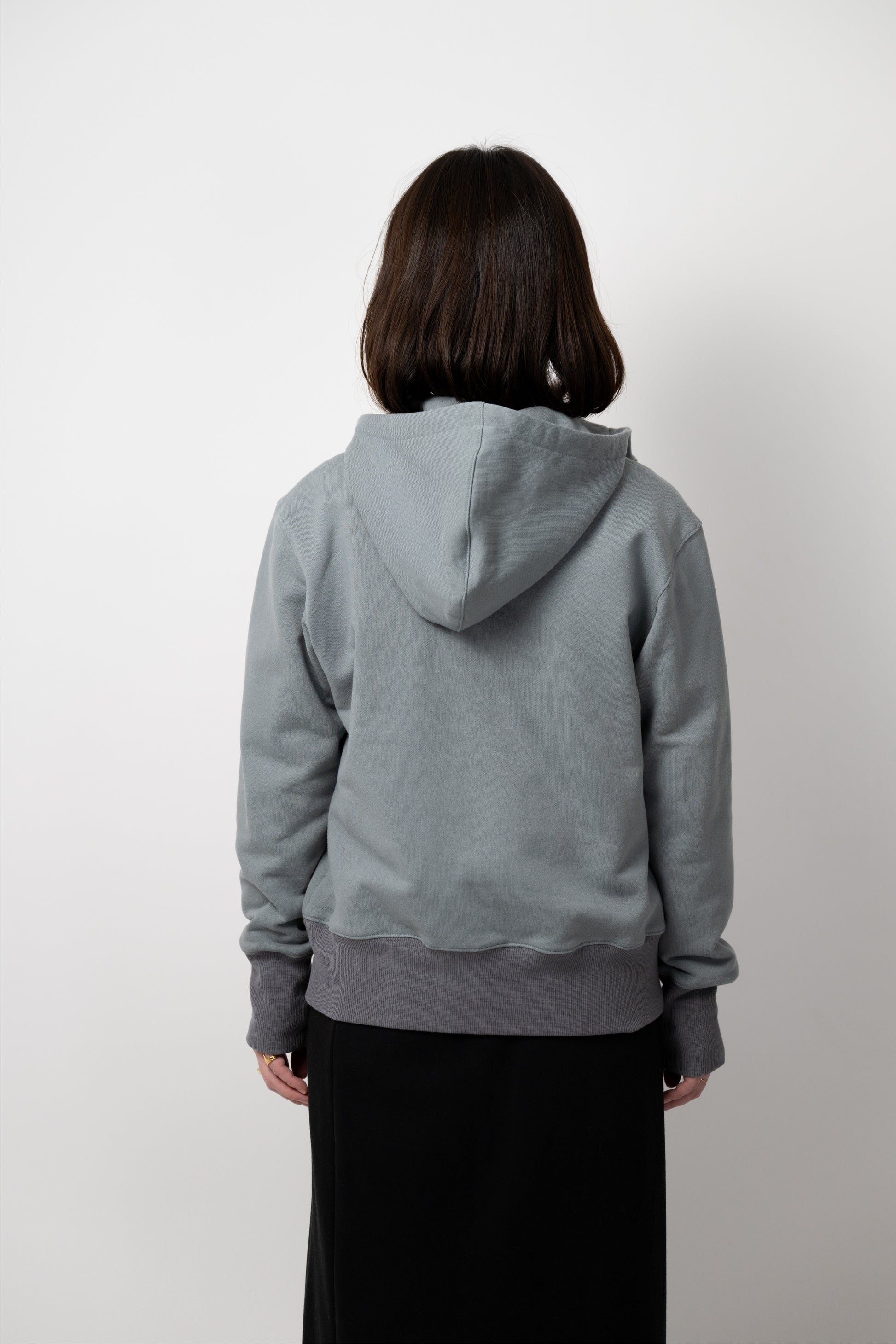 フィット感のあるフルジップパーカー。フードは生地2枚重ねで、立体感を出す形が特徴のこだわりシルエット。インナーとしてもアウターとしても通年使え、ジェンダーや年齢関係なく長く着続けられる一枚。ジッパーはブラックにはアンティークゴールド、グレーにはアンティークシルバーのエレメントを使用。ダブルジップで利便性もあり着こなしも様々。