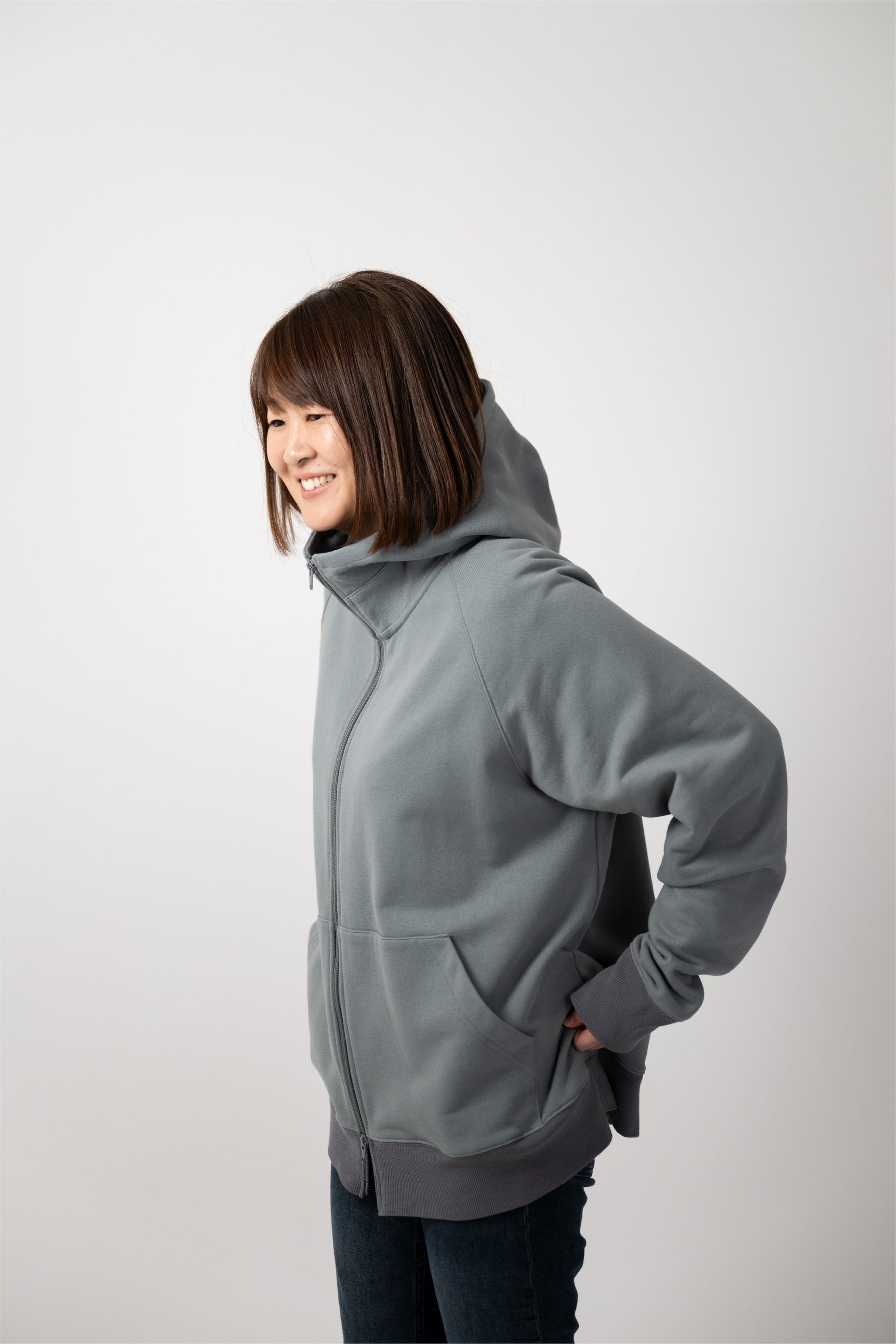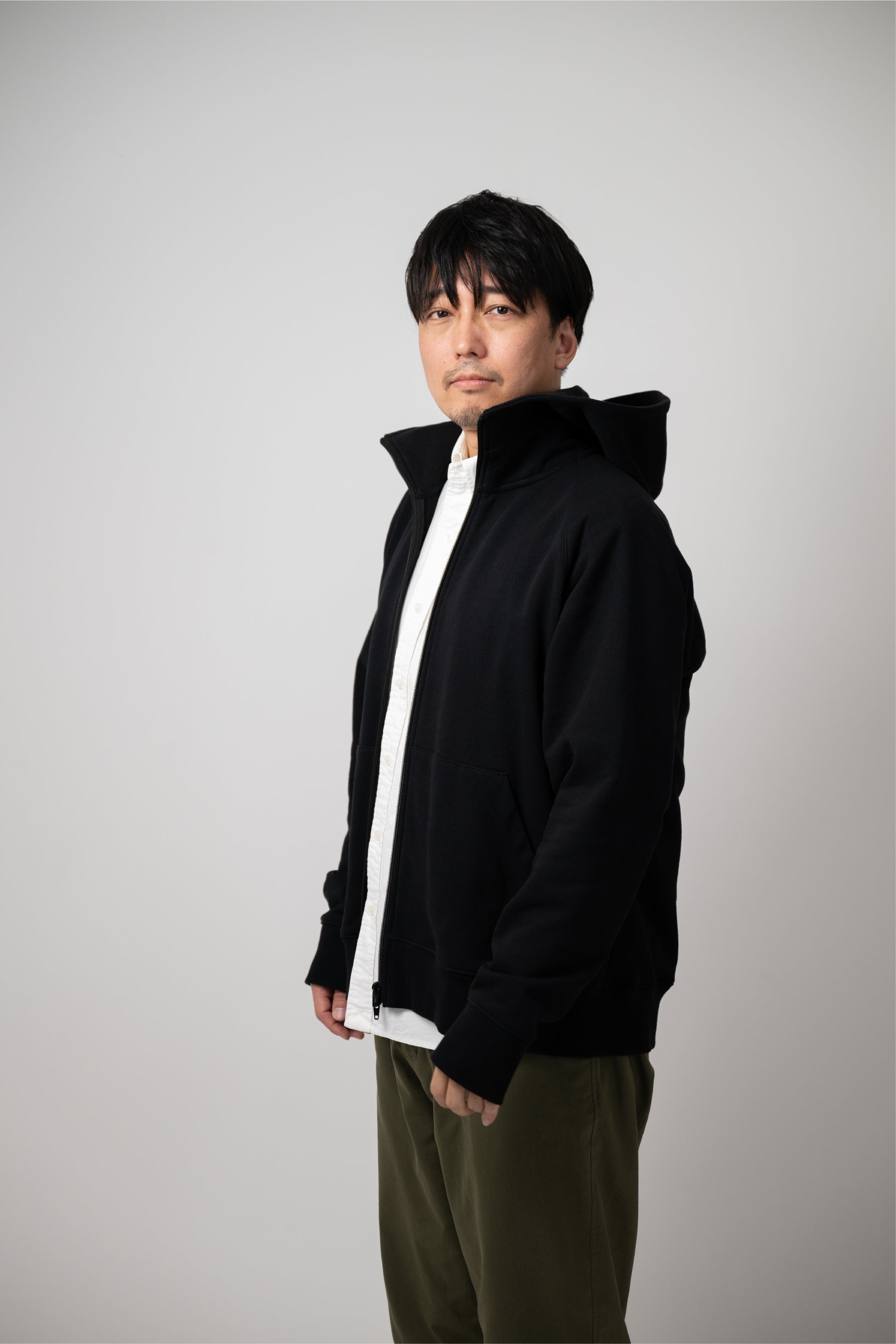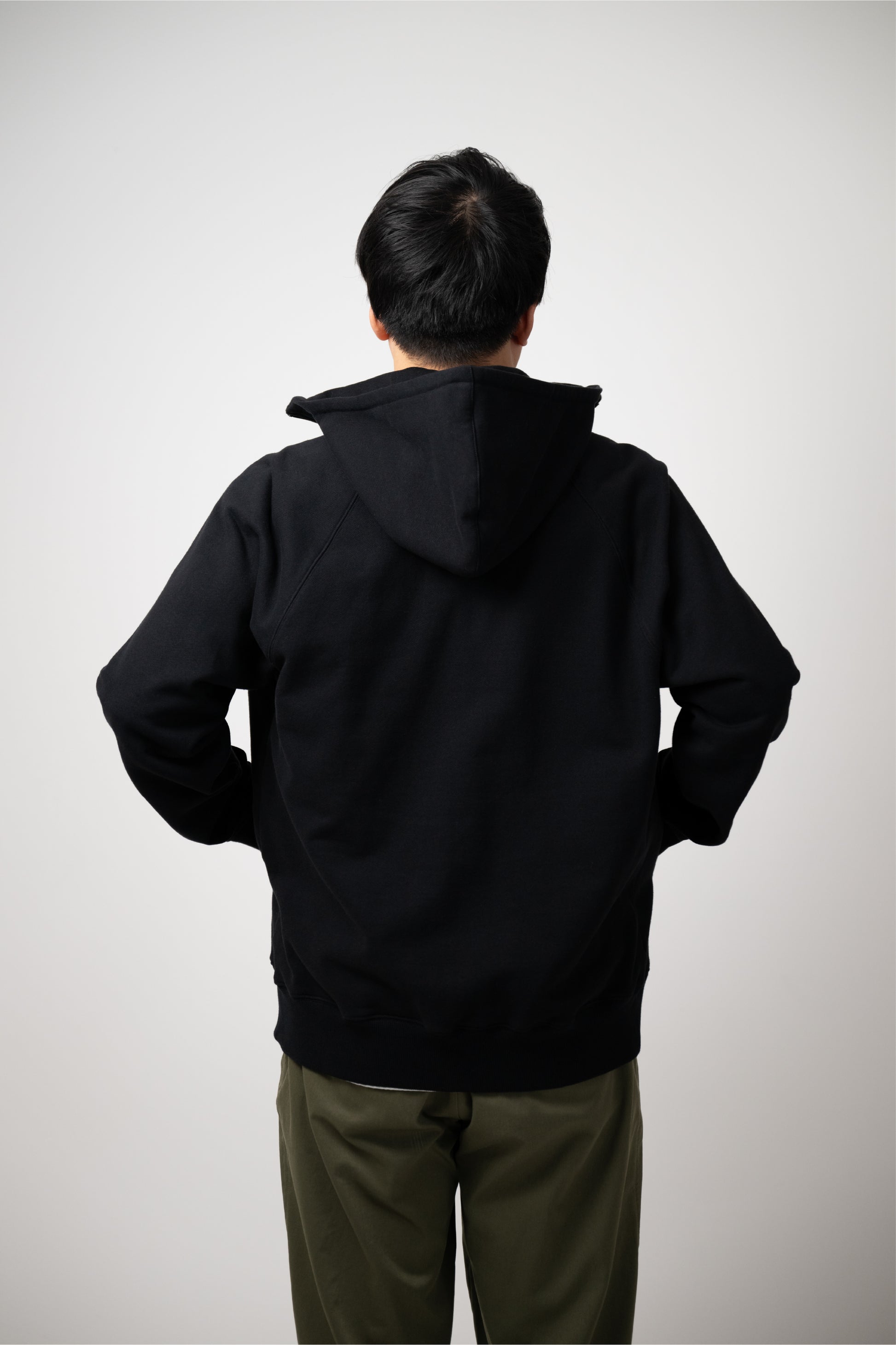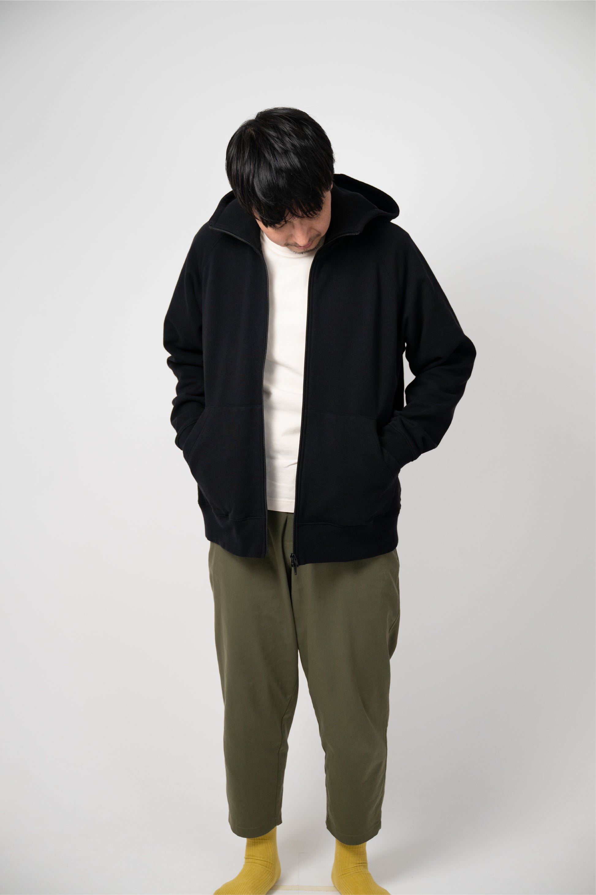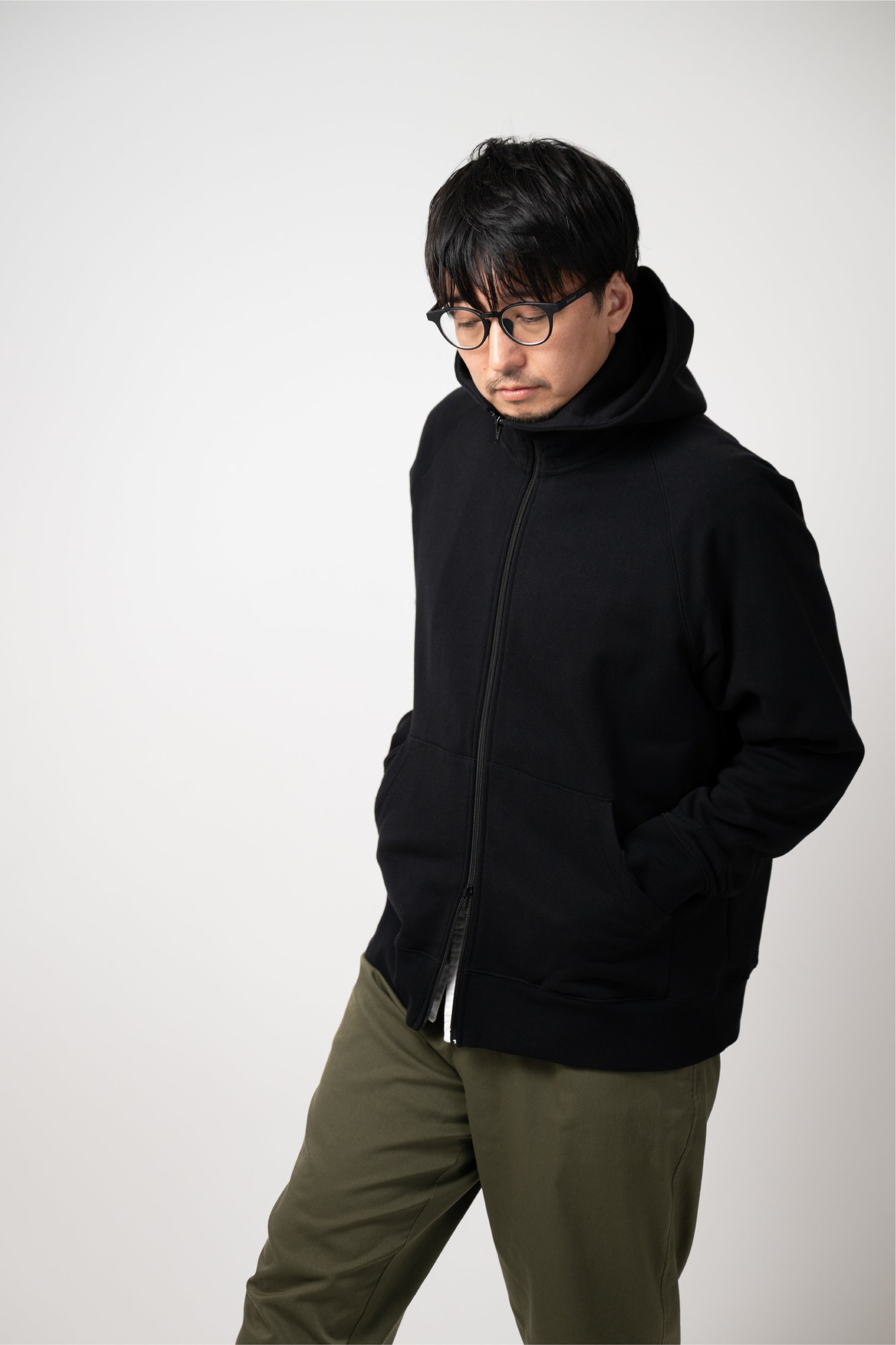 クラッシックなラグランスリーブのフルジップパーカー。フードは生地2枚重ねの台衿付きで、立ち上がりがしっかりした特徴のこだわりシルエット。カジュアルながらもどことなくメリハリある印象で、ジェンダーや年齢関係なく長く着続けられる一枚。ダブルジップファスナーで利便性もあり着こなしも様々。